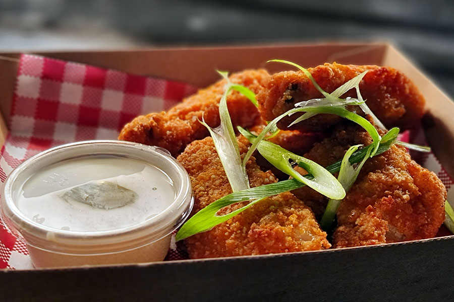 Chicken majestic - Deep fried chicken strips coated in spicy, tangy yoghurt sauce with mint shreds